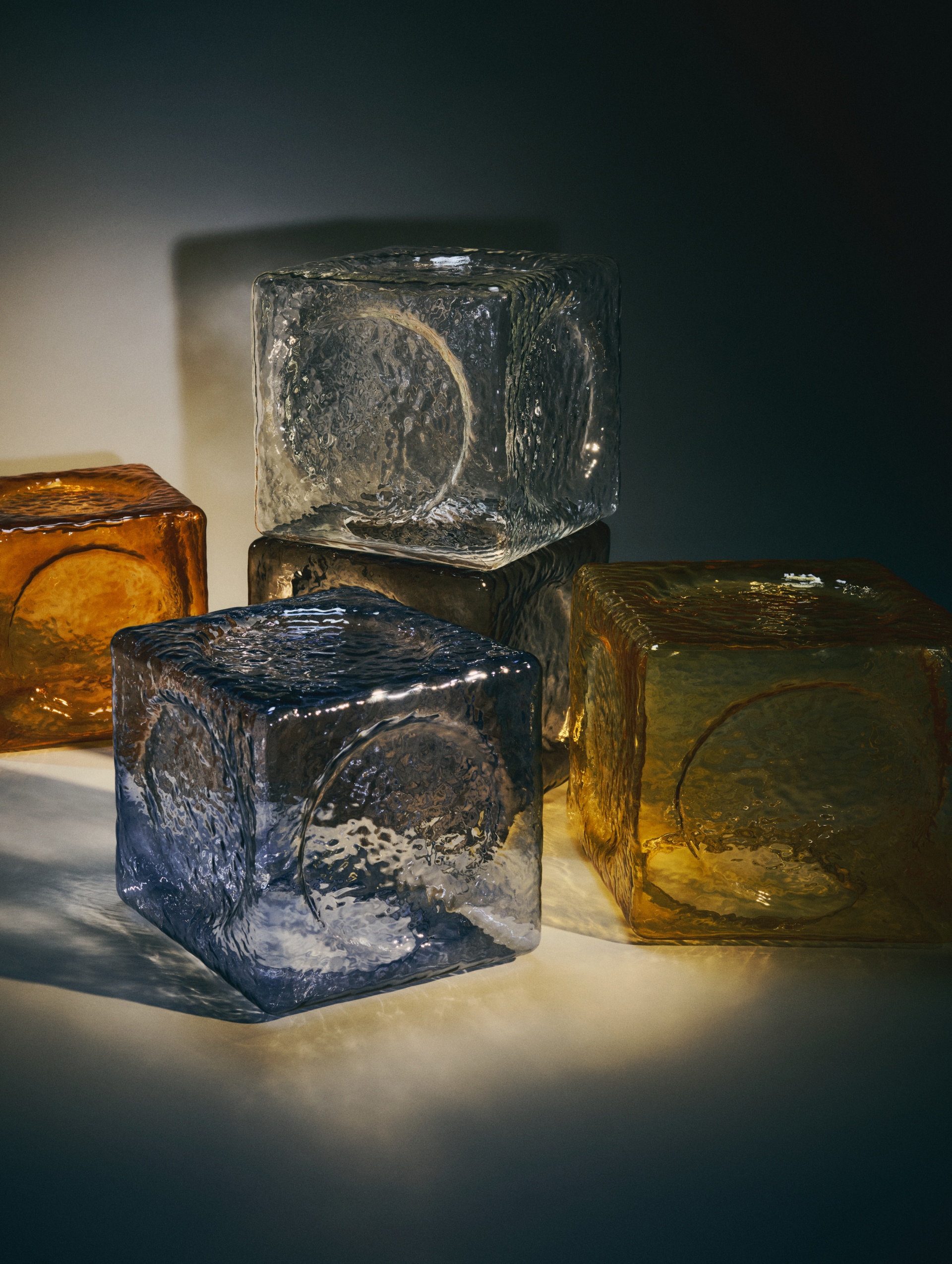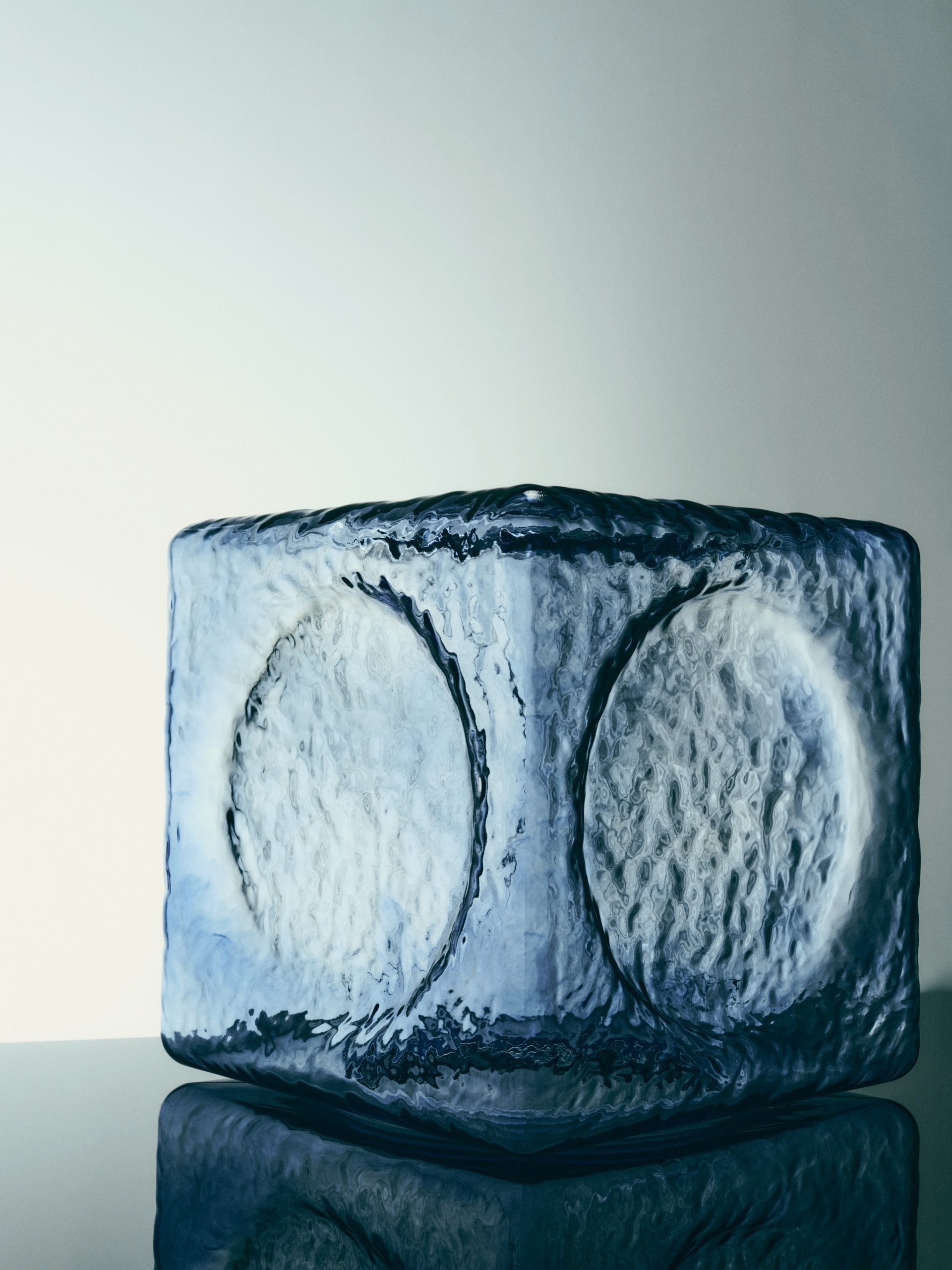 Born from the desire to expand the company’s portfolio into home accessories, Etime is based on a simple geometric principle: the meeting of square and circle. The cubic volume evokes time as a measurable and ordered structure, while the circular imprint engraved on each face introduces the idea of continuity and flow. Made of mouth-blown glass, Etime functions as a modular element with a strong sculptural presence. Whether displayed individually or combined into larger compositions, it integrates naturally into different contexts while maintaining its formal coherence and expressive intensity. Etime translates an abstract concept into tangible form, using geometry to make a reflection on time visible.