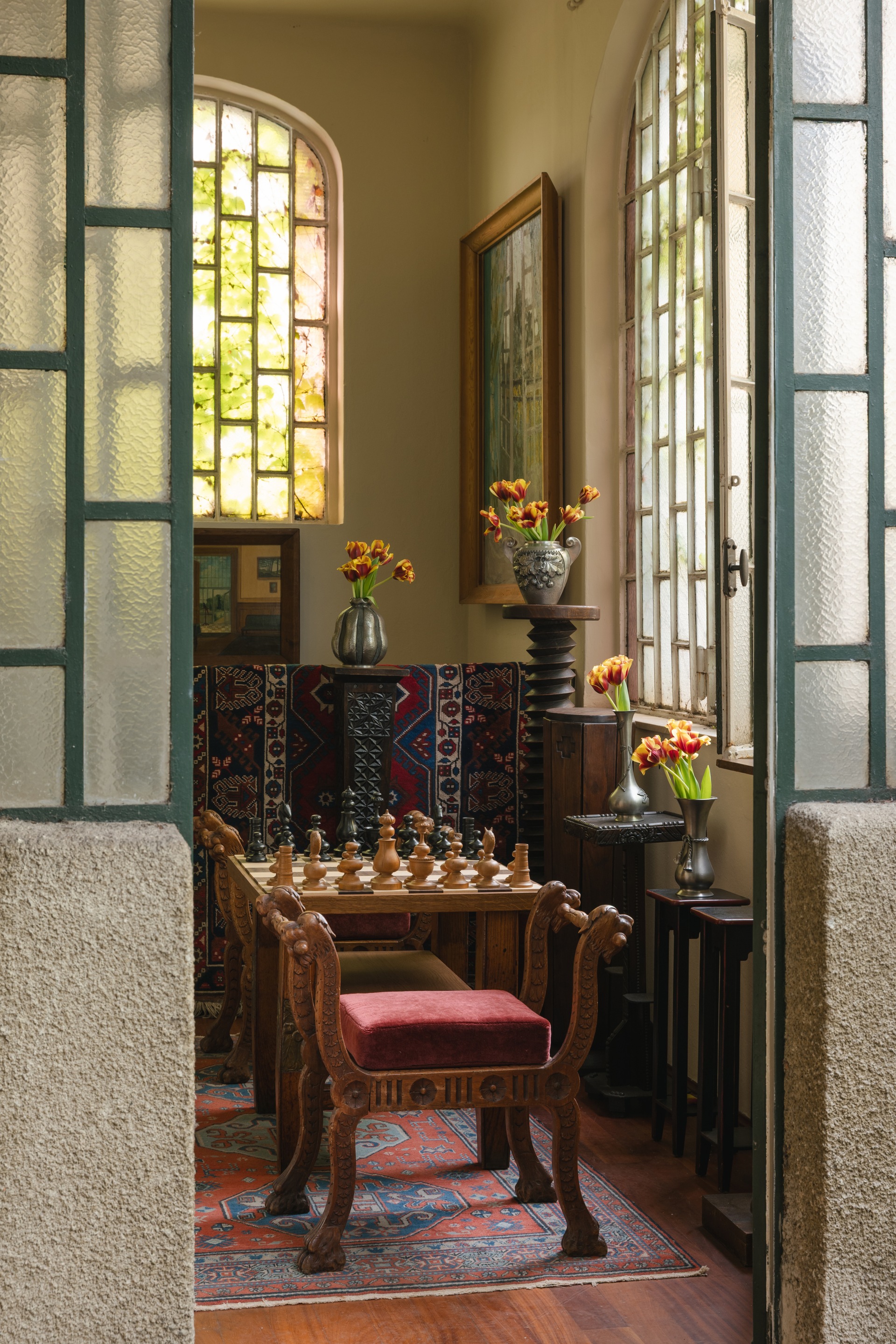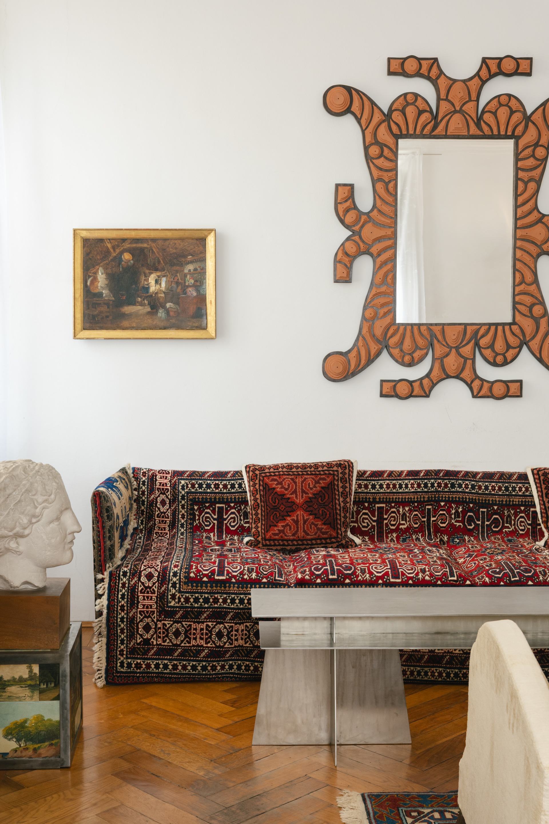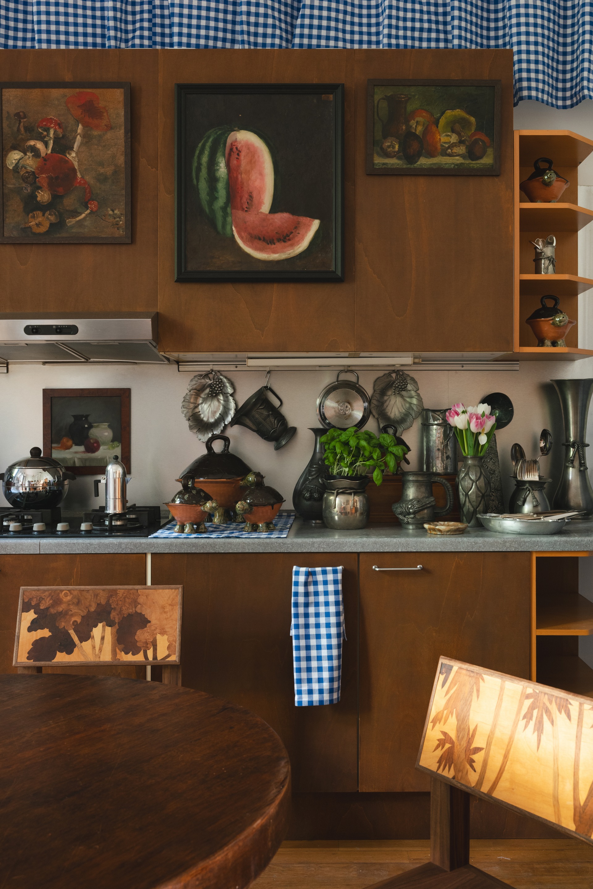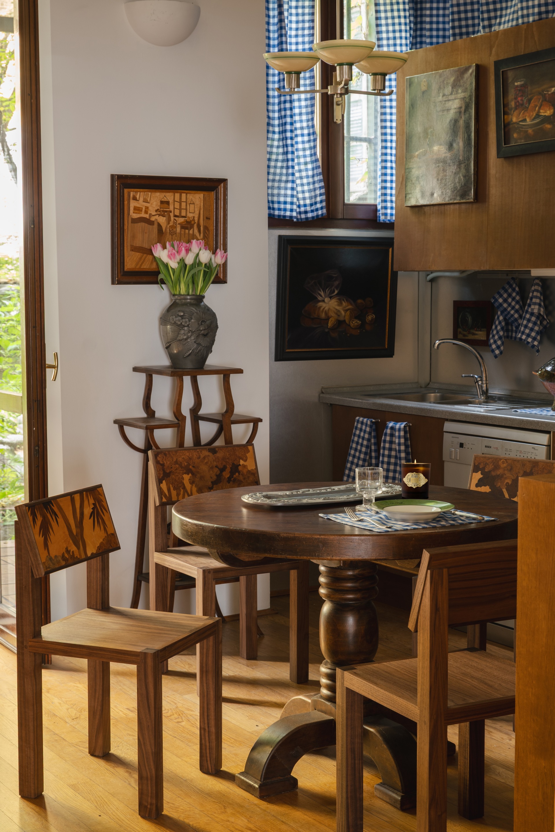 The Milanese apartment itself is a mirror of Billore’s aesthetic, drawn to "familiar worlds, filled with lived experience, but with a twist". It showcases his "passion-obsessions," featuring decorative landscape panels in wood marquetry repurposed as kitchen cabinetry fronts. The bathroom features a witty display of tightly packed salon-style picture hangings. Perhaps the most enchanting detail is the living room floor, adorned with a Persian rug meticulously embroidered with the shadows of the furniture resting upon it. Throughout this inspiring space, L’Artisan Parfumeur’s olfactory world is deeply integrated, featuring candles, cleansing gels, moisturizing lotions, and the iconic amber ball.