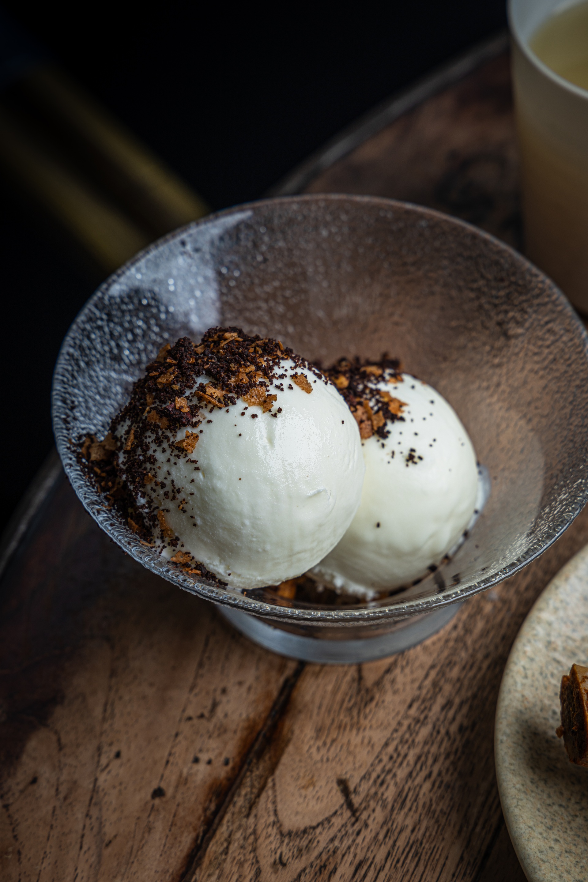 Even the menus that look like paper are made from harvested algae, while the bar has replaced plastic entirely, opting to use glass for storage and preparation. Fallow's menu offers a selection of snacks and sharing plates, with a discernible nose-to-tail ethos and a dedication to sustainability. It features often-overlooked ingredients sourced from the British Isles, while growing its own mushrooms on-site from spent coffee grounds, showcasing a true farm-to-table philosophy. They use interesting cuts; everything is seasonal and focuses mainly on British and Irish produce. The time-consuming processes are truly impressive (all fascinatingly shared on their Fallow Instagram page. The pair recently launched an online foodie platform (@fallowchefs) that documents new recipes, tips, and tricks in the kitchen - and has amassed more than 1.3 million followers. All the dishes at Fallow spend time over flames, from the seriously dry aged cow cuts to charring the chilli peppers, roasting the cauliflower, and smoking the shiitake mushrooms.