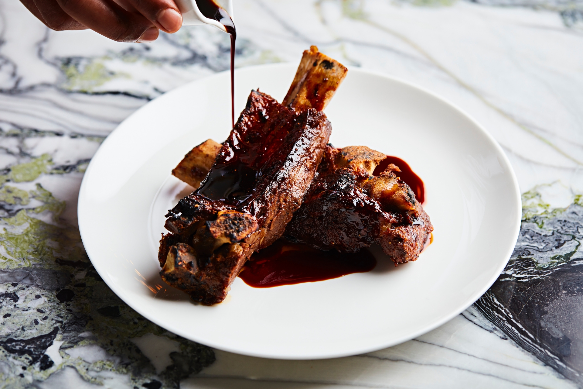 Next, Sweetcorn ribs are liberally seasoned with kombu, are sticky, sweet, and chewy. The creamiest Burrata comes to life with the delightful sweetness of caramelised onions and a zesty, crispy chilli dressing, topped with aromatic herbs. Fallow's Beef Ribs, are a taste explosion, their flavour infusion begins with a four hour immersion in brine, followed by a generous coating with a signature barbecue seasoning and braised to perfection for another eight hours (the braising liquid goes on to create their flavorful master stock), they are then blast chilled and portioned for serving, and when it's time to delight our taste buds, they are grilled for a smoky finish, placed on a tray lined with kombu, and heated to order. A quick blowtorch on the top breaks down the sinew, and they finish them with a luscious glaze of red wine sauce, topped off with more kombu and a hearty drizzle of their delicious red wine sauce! They melt in your mouth!