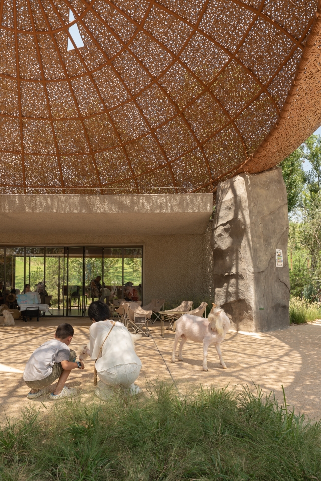 首次踏勘基地時,團隊發現越往上走,空間光度越不足,六樓僅有的採光也被逃生通道遮蔽。於是,Wutopia Lab設計出三個相疊的兩層高中庭,透過天光和玻璃地板把日光引到一樓的紅色書山中央。三個中庭分別是書城的廣場、禮堂和劇院。圍繞這三個節點,城市在二到七樓的垂直高度展開。首先沿手扶梯延伸形成街道、街心花園、庭院以及建築。自動扶梯每兩層錯位佈置,將街道盡可能深入建築的內部,最後匯合在每兩層城市的中心:中庭。整個城市有點像迷宮,需要逛逛。這個「逛」字代表了一種隨意、放鬆的生活態度,目的性不強,漫不經心,也可能是漫無目的,卻能夠偶爾獲得趣味、驚喜和快樂。