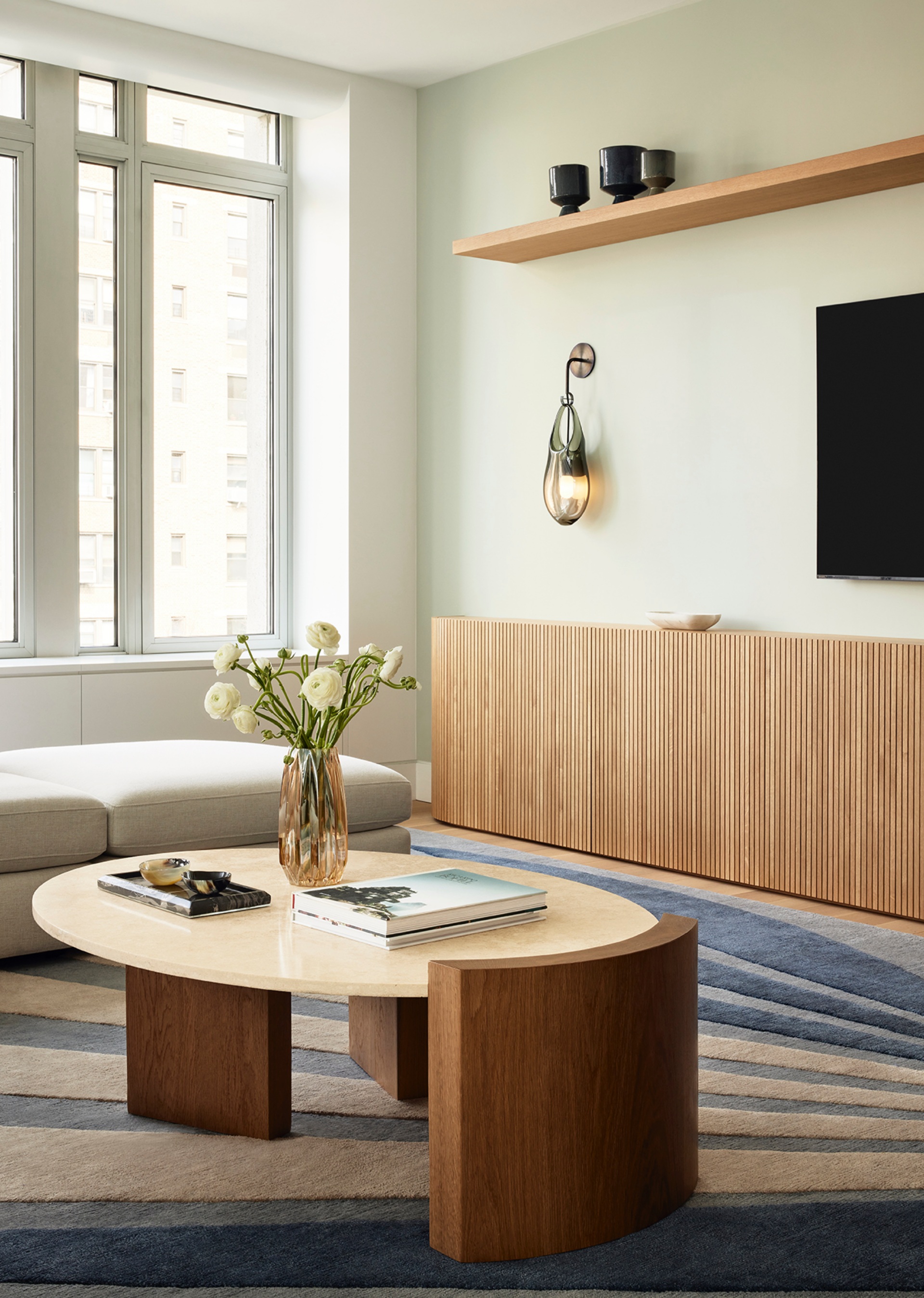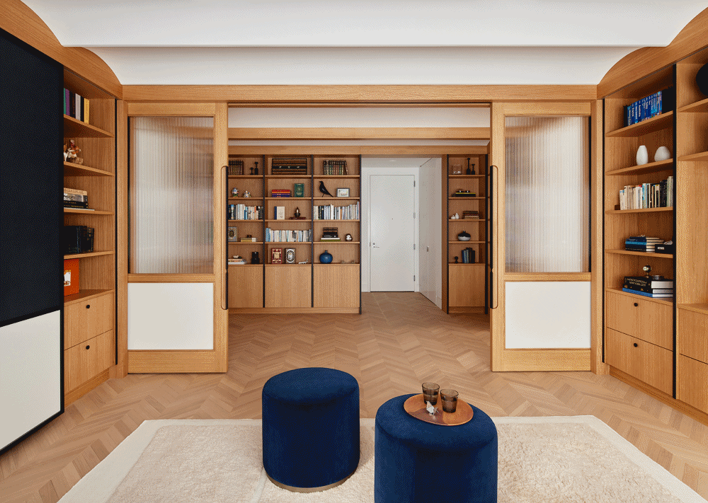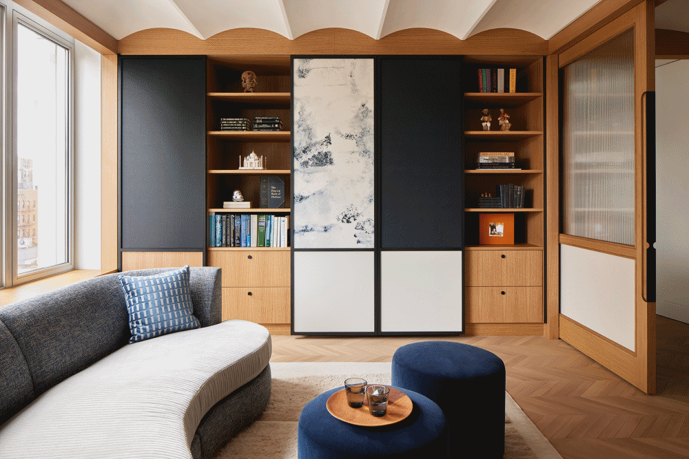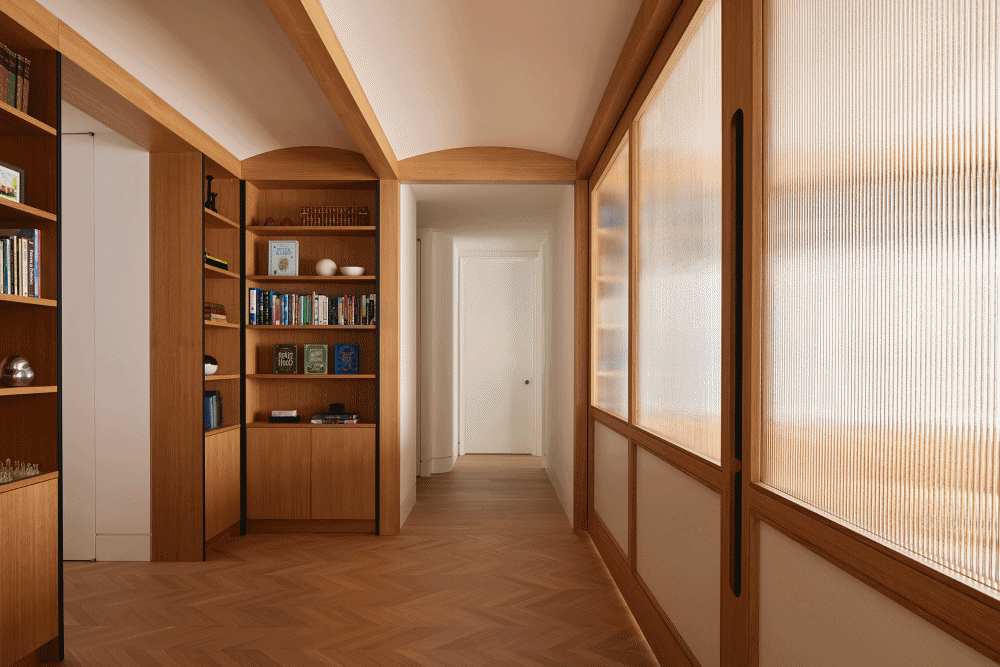 Frederick Tang Architecture(FTA)為一對夫婦與其三名孩子在在曼哈頓Upper West Side設計了一個2,800平方呎的寓所。兩戶相鄰住宅被巧妙融合,化為一個流動自如又充滿秩序的家,既有家庭日常的熱鬧,也保留了靜謐與優雅的角落。
