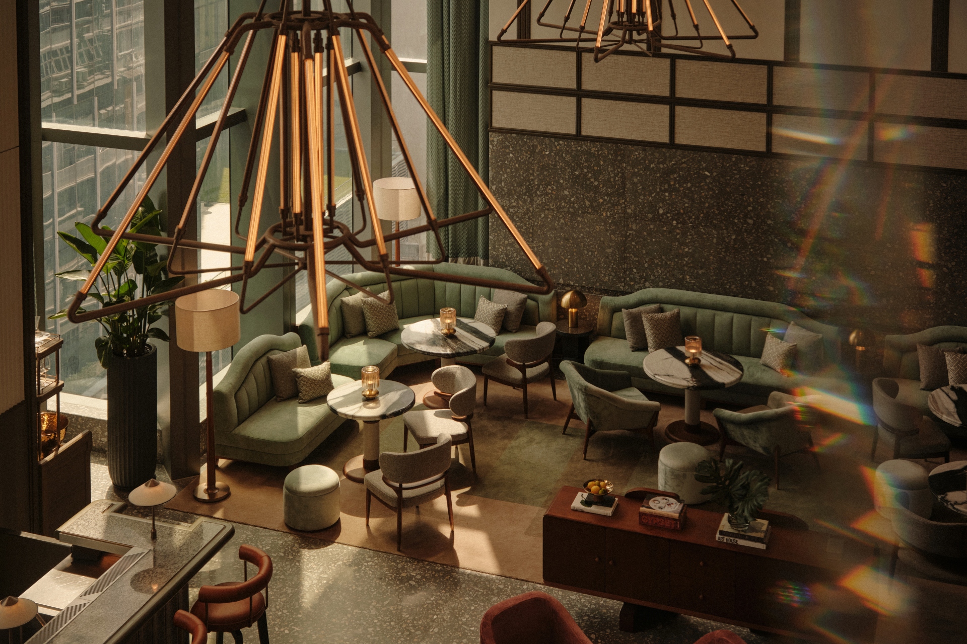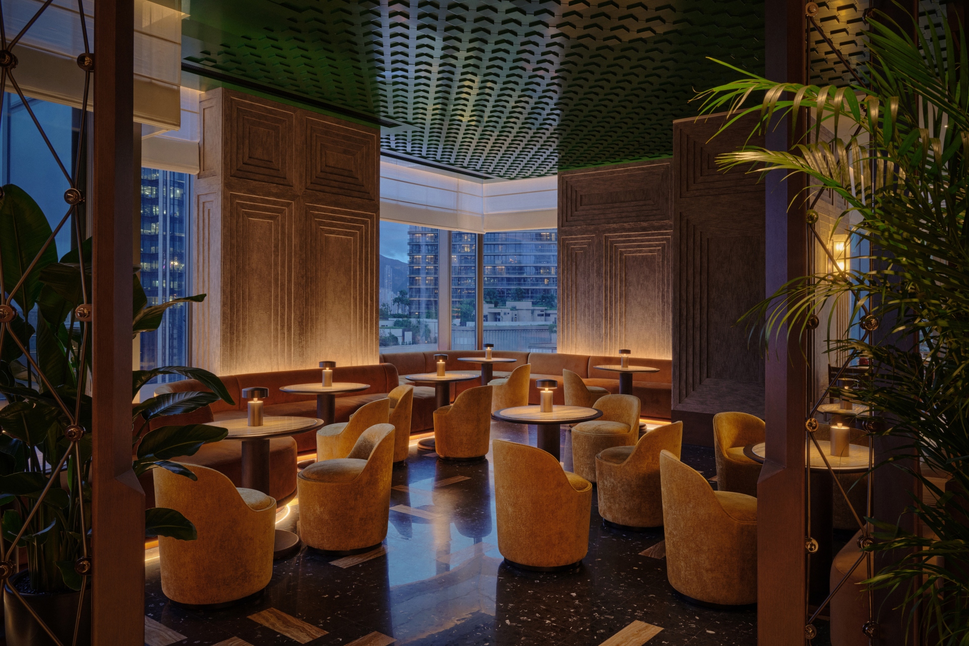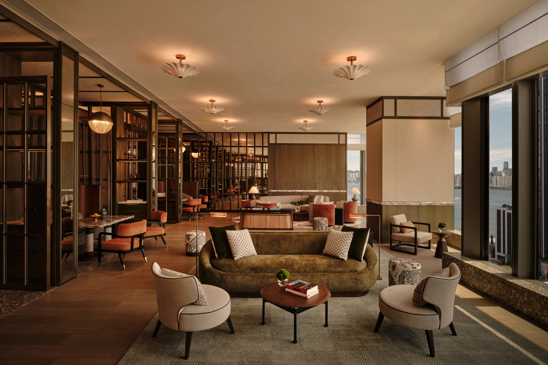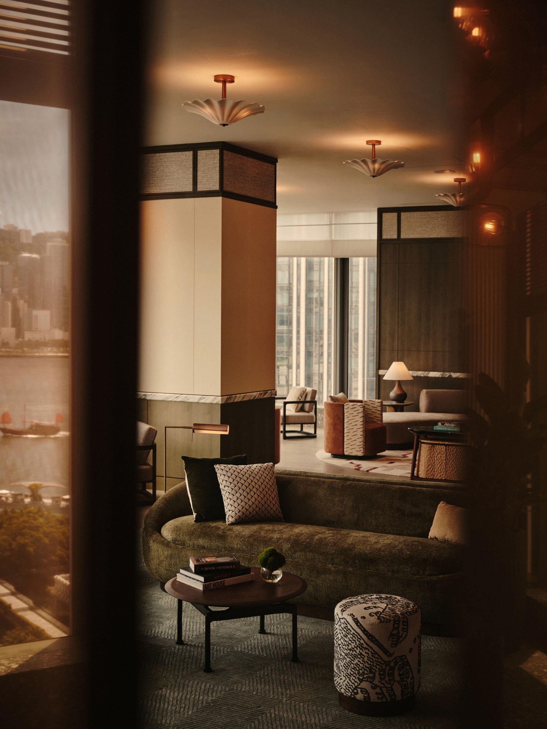穿梭金普頓酒店,就像走過一場場精心編排的場景。空間在壓縮與釋放之間切換,讓城市景觀不斷以新的角度重新對焦。設計中亦隱藏一條伏線,向建築的前身「海員之家(Mariners’ Club)」致意——那種關於啟程、過渡、身在旅途的流動感,依然在空氣中靜靜迴盪。