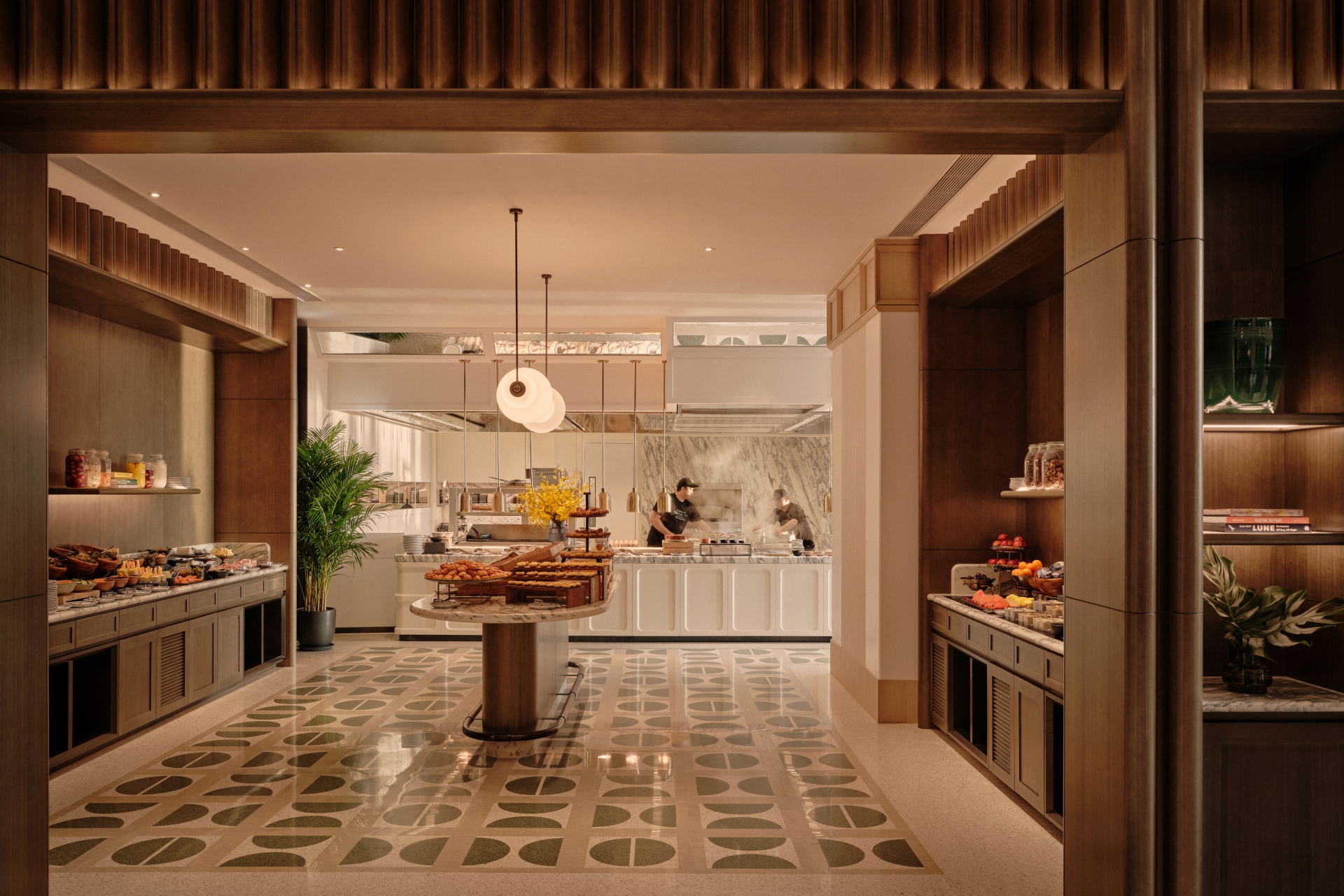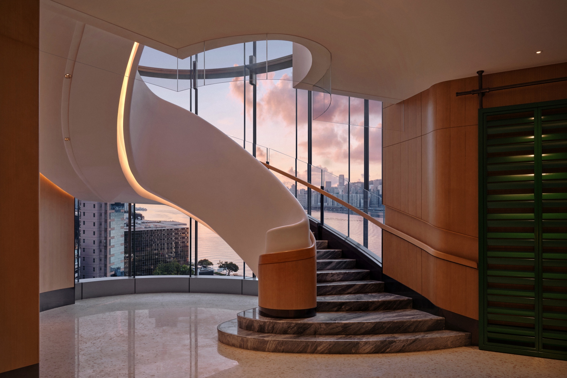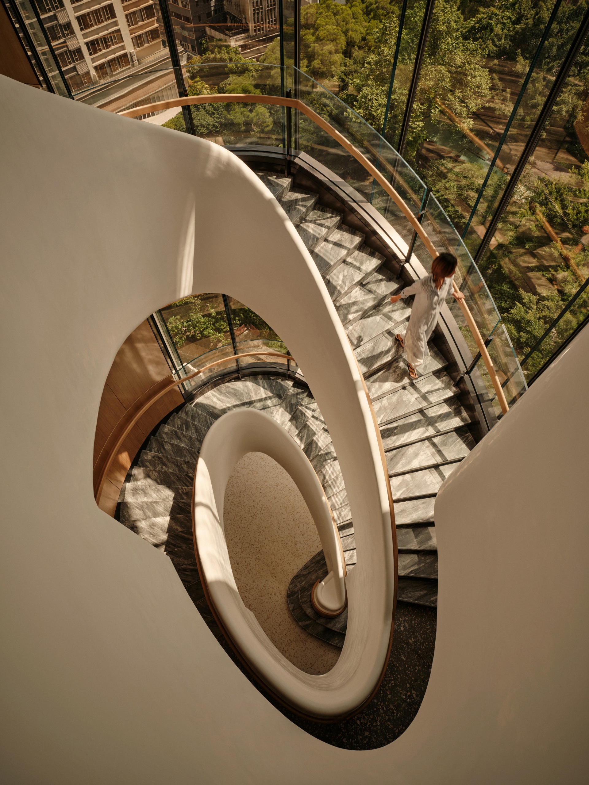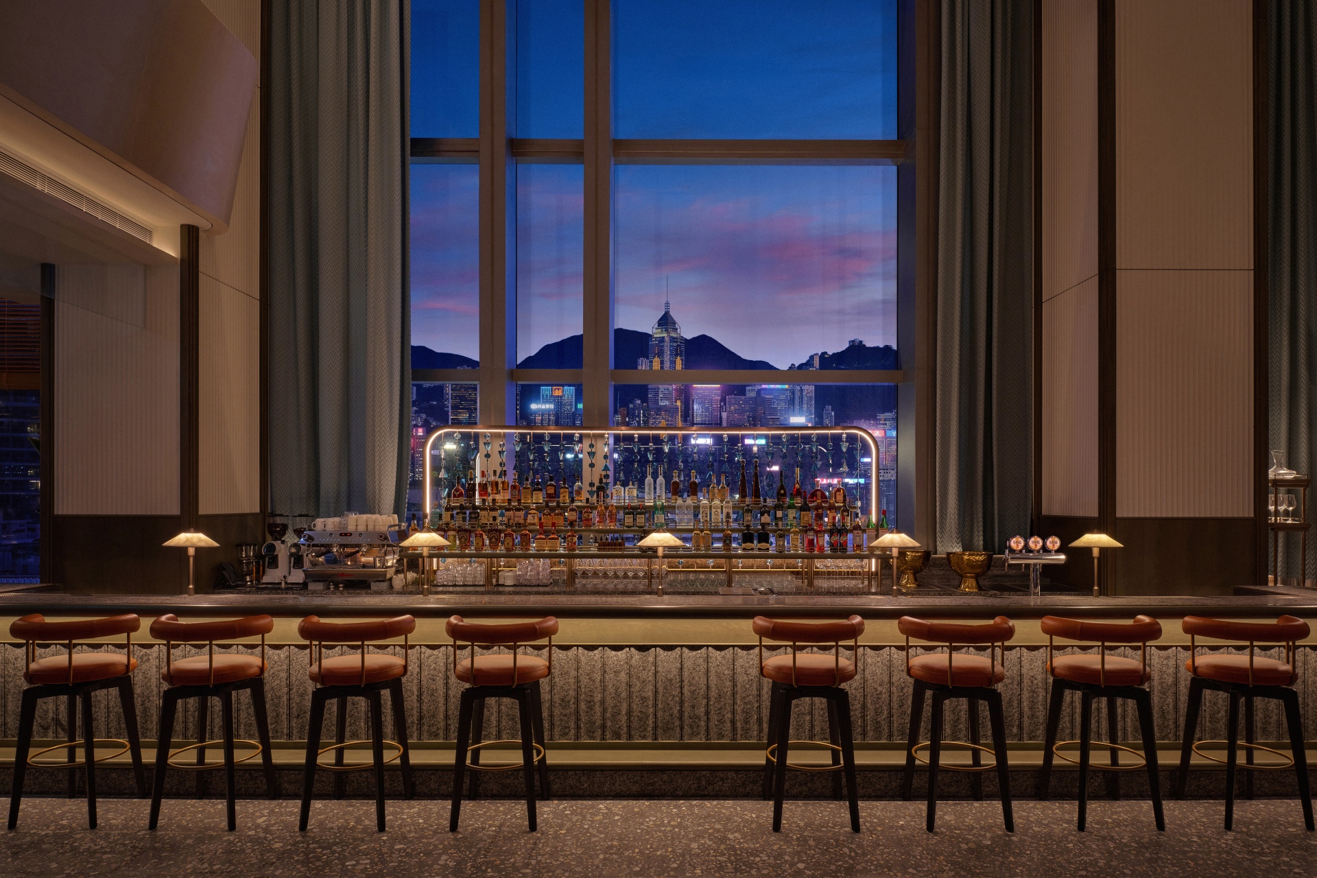 穿梭金普頓酒店,就像走過一場場精心編排的場景。空間在壓縮與釋放之間切換,讓城市景觀不斷以新的角度重新對焦。設計中亦隱藏一條伏線,向建築的前身「海員之家(Mariners’ Club)」致意——那種關於啟程、過渡、身在旅途的流動感,依然在空氣中靜靜迴盪。