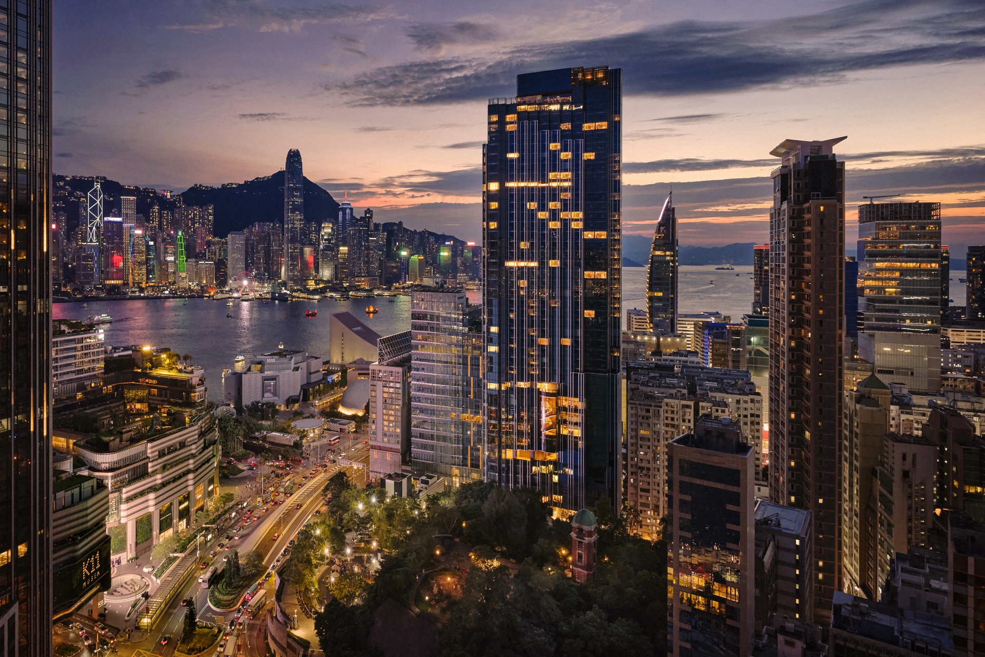在尖沙咀街頭,香港那種由霓虹燈、車流與人潮交織而成的密度,總是讓人透不過氣。酒店並沒有用浮誇的大門來隔絕這份壓迫感,而是選擇了一種微妙的轉折。踏入室內,視線自然會被引向那部被構思為「時光機」的電梯——它的存在,是為了將你從街頭的焦躁中剝離,帶往一個更沈穩、更從容的維度。