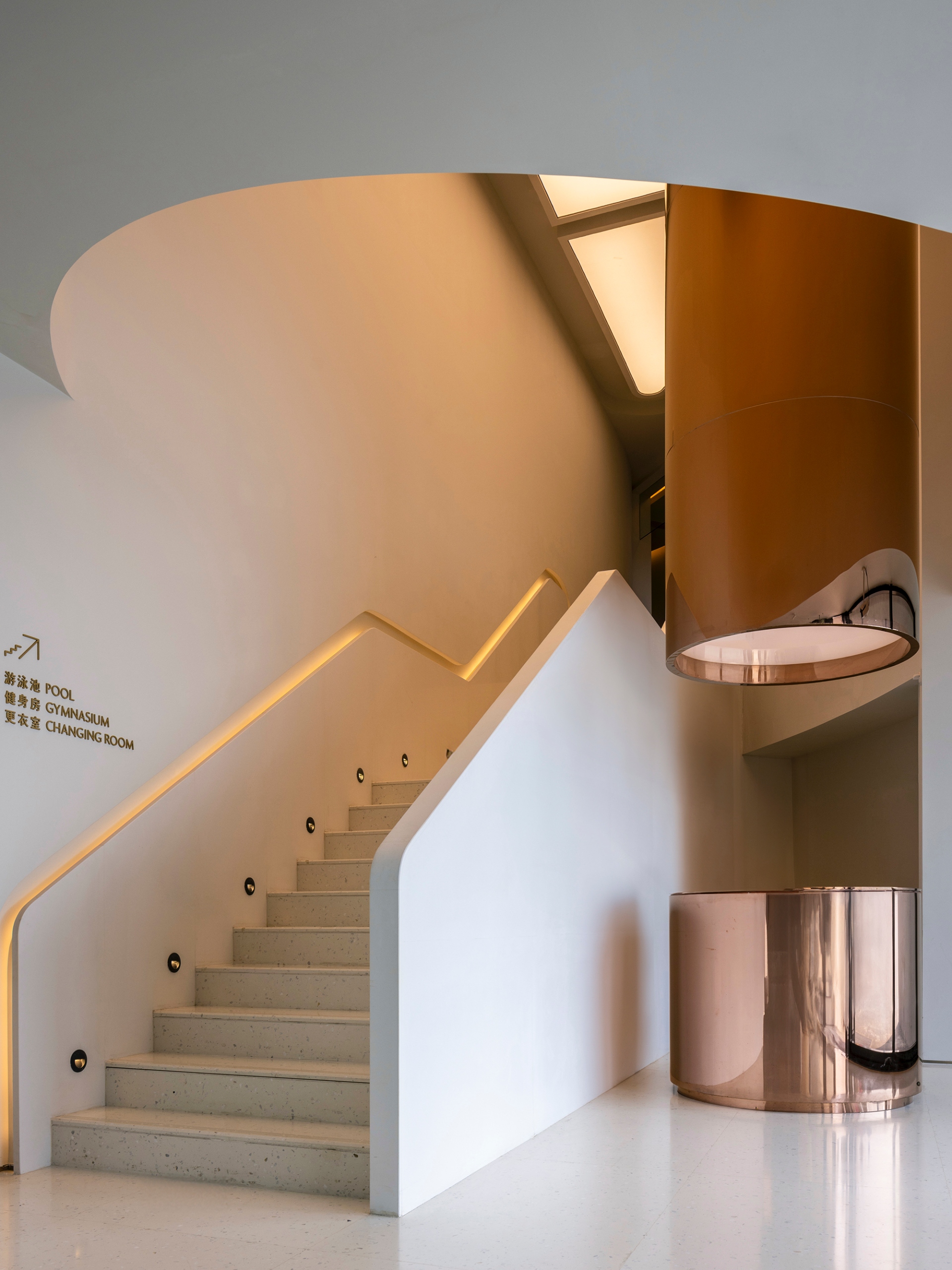 The Rock rises across three distinct levels, a massive boulder housing diverse functions. The ground floor accommodates a hotel-facing lobby and essential back-of-house utilities. The second floor is dedicated to the main pool, wading pool, children’s pool, outdoor pools, and changing rooms, while the third floor hosts the gym.