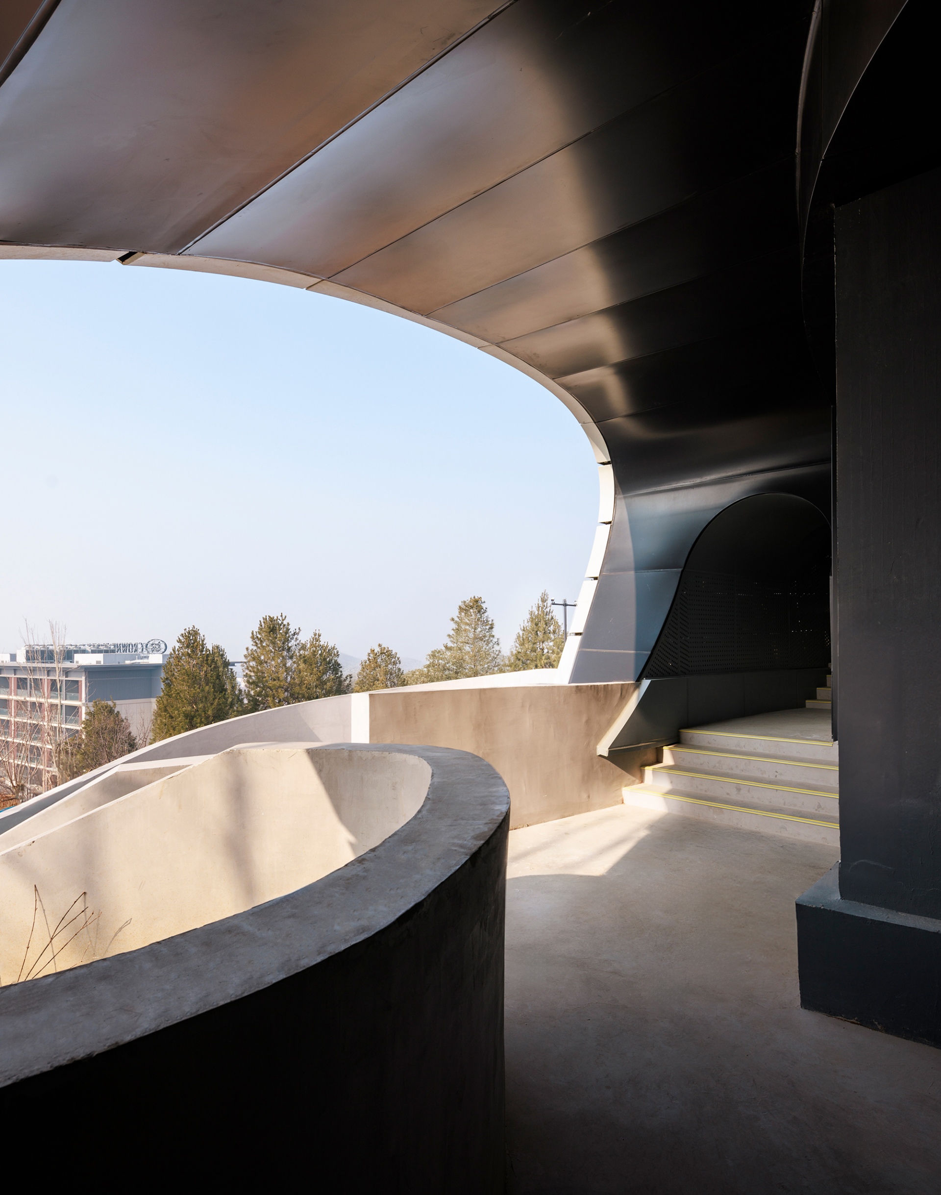 The utility rooms of The Rock span nearly 900 square meters, exceeding half the total area. To maintain the visual proportion between the building and the cliff, these service spaces were cleverly buried into the mountain, treated as part of the landscape, thus preserving the main "stone" structure's visual lightness. However, given Tangshan's Grade-8 seismic zone, even a small cantilever posed extreme difficulties. Parts of the curtain wall framework were ingeniously utilized as structural reinforcement to ensure the final form could be realized.
