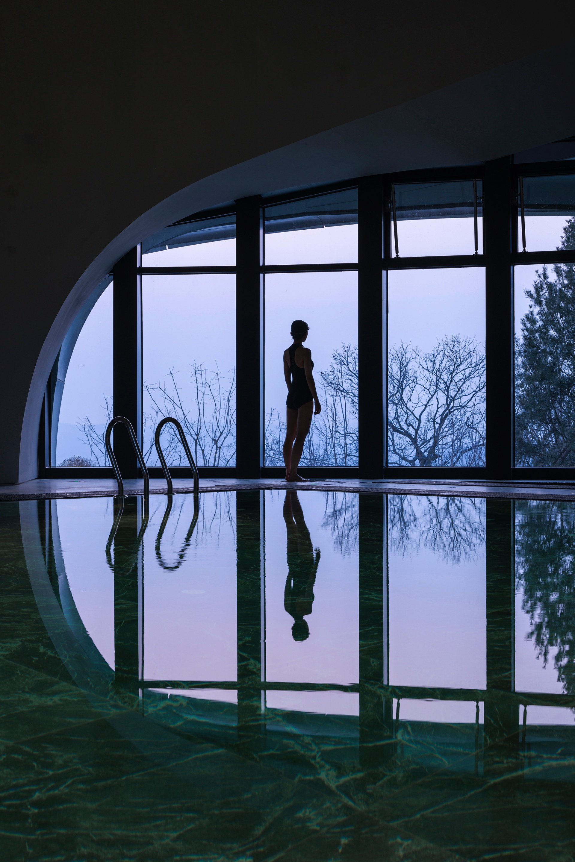 The gym on the second floor offers a superb vantage point, allowing guests to gaze from a smaller cave into the grander pool area, while also extending their view beyond the rock to the surrounding natural landscape. For privacy, the outdoor hot spring pools are nestled within the terrain and vegetation, yet still offer a distant glimpse of the Great Wall. As night falls, the twinkling lights above the pool transform the cave into a celestial dome, a starry sky within the mountain. Wutopia Lab's design subtly challenges expected combinations, using both daylight and electric light to create a dynamic and ever-changing experience.