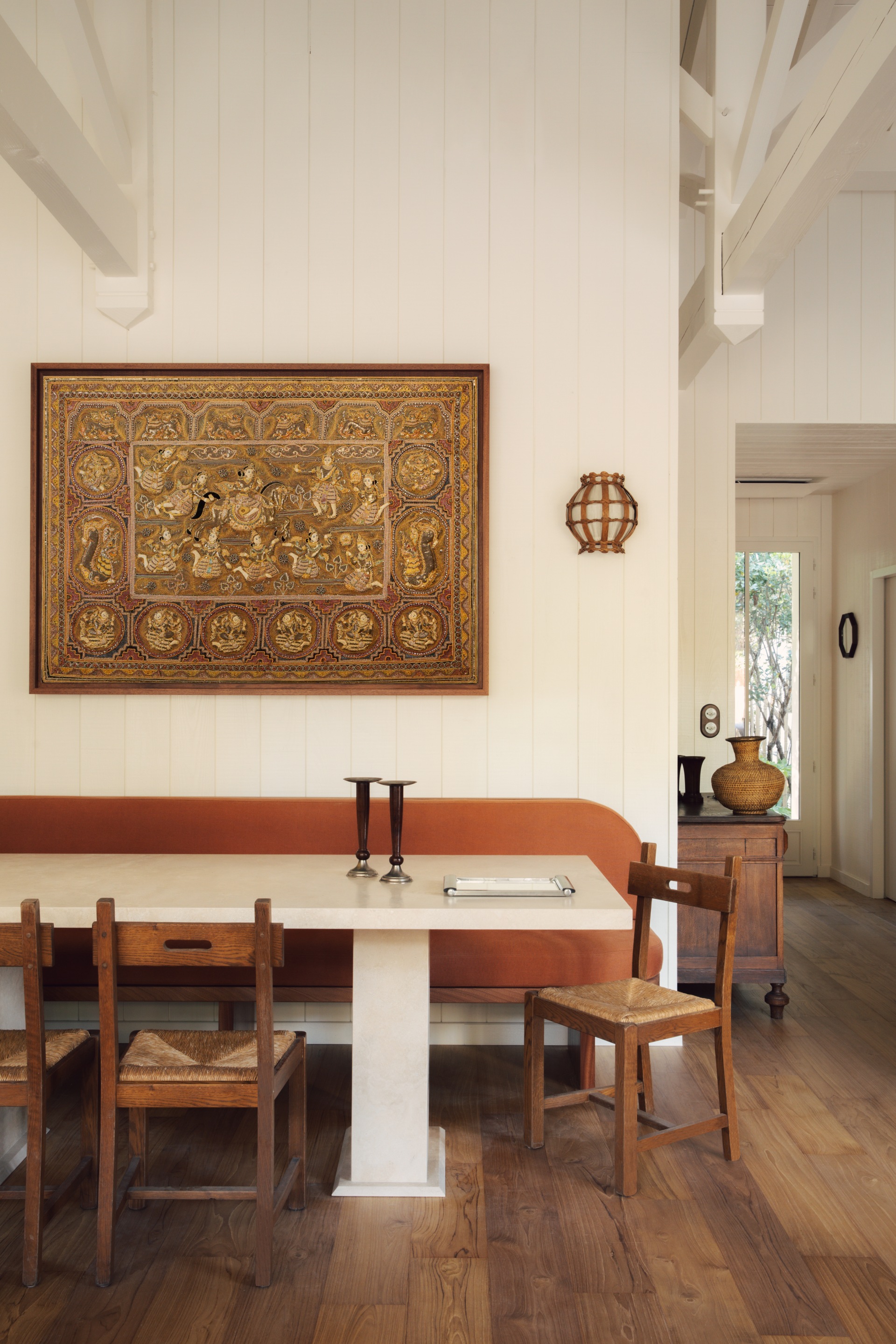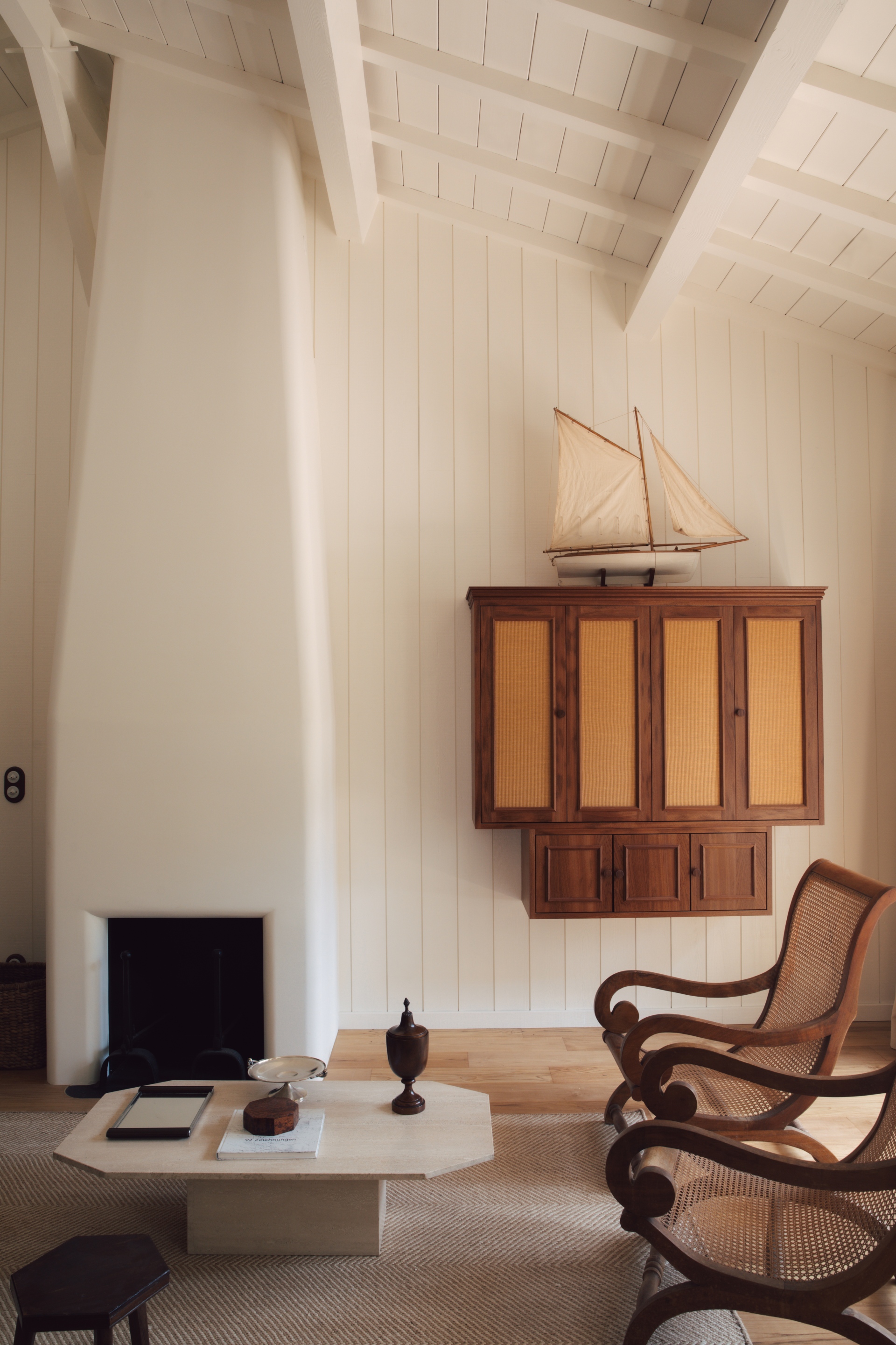 The interior design language is a sophisticated echo of the Atlantic landscape’s most structuring elements: pale wood boarding, elemental mineral renders, and a refined palette of natural tones that traverse from luminous off-white to profound, earthy browns. The result is a sober yet profoundly embodied aesthetic. Enriching this composition is a subtly reinterpreted colonial inspiration, manifesting in the curated selection of antique furniture, artisanal pieces, and objects—both collected during travels and thoughtfully found. This layering of objects hints at a personal, timeless style imbued with a spirit of exploration, finding a natural resonance in the atmosphere of the Ferret: a territory that exists elegantly between land and ocean, permanence and openness, hushed stillness and inherent warmth.