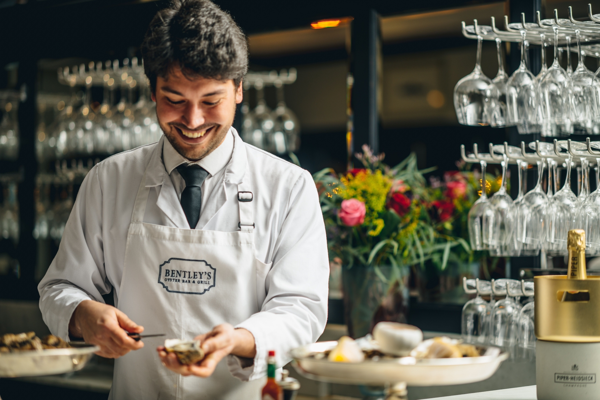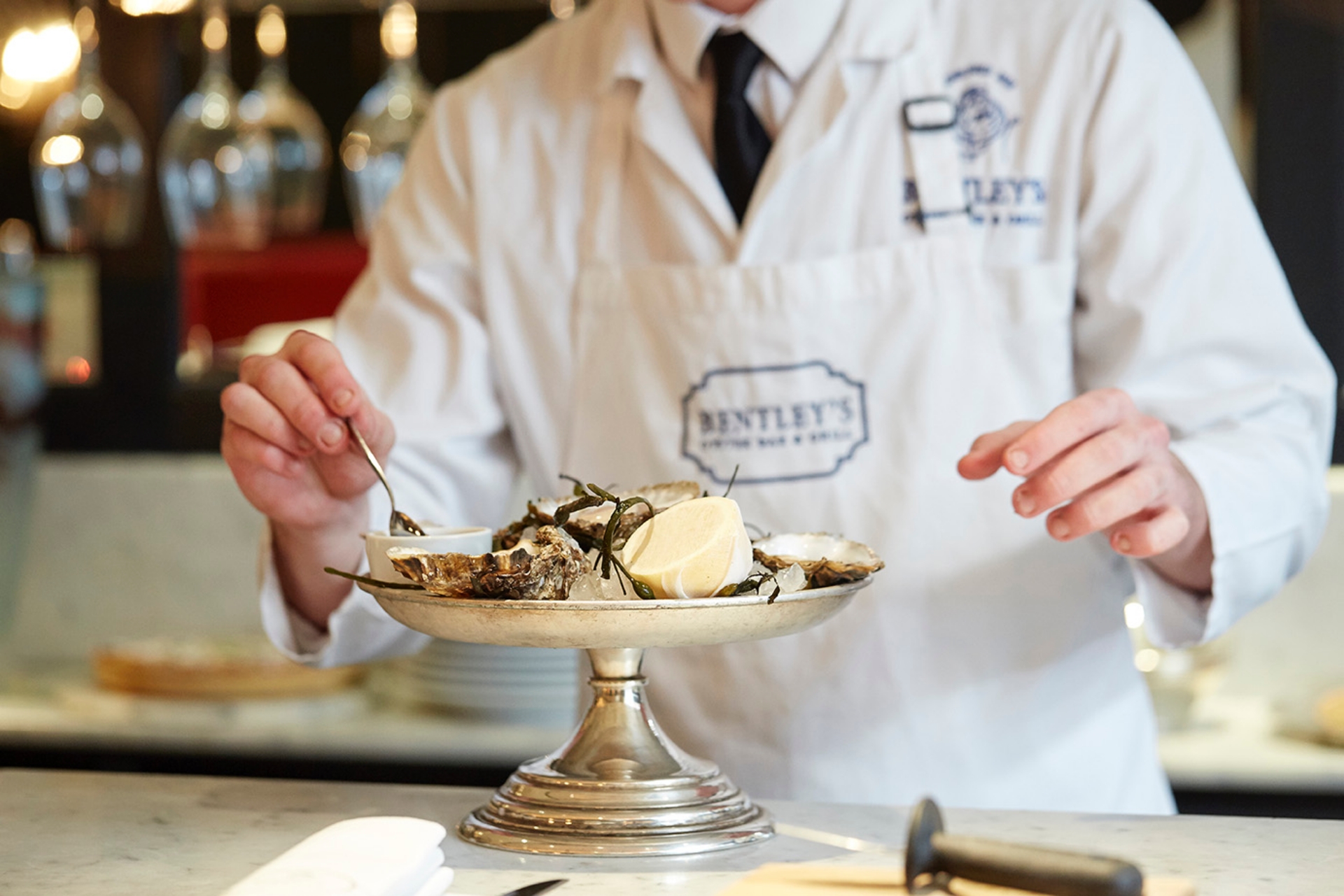 Bentley's was purchased by Michelin-starred chef Richard Corrigan in 2005. He had previously held the title of Head Chef at the restaurant under Owide and had been convinced of its potential. Keen to build on Bentley's excellent tradition and reputation, his philosophy is straightforward: to use the best seasonal ingredients, sourced from reliable local suppliers, and prepare them with great respect. 'We are committed to offering wild, line-caught fish, sustainable and traceable seafood, and top-quality British meats. Our pride and joy is our extensive selection of the finest native oysters from the UK and Ireland—both wild and cultivated. It's honest, delicious food that you'll want to savour.' It remains a seafood institution famous for its oysters. Bentley's legendary Oyster Boys shuck up to 1,000 oysters daily on the original marble-topped bar. 105 years later, it remains strong, loved by many, and continues to receive fabulous accolades.